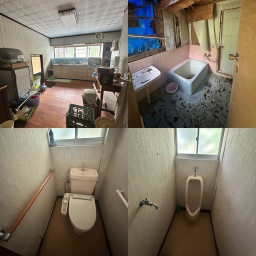 納屋付きの古民家です。 駐車場は軽自動車程度でしたら駐車可能です。 一部雨漏りする箇所と、浴室内一部修繕が必要となります。 売却または譲渡型賃貸をご希望される場合はご相談ください。 |